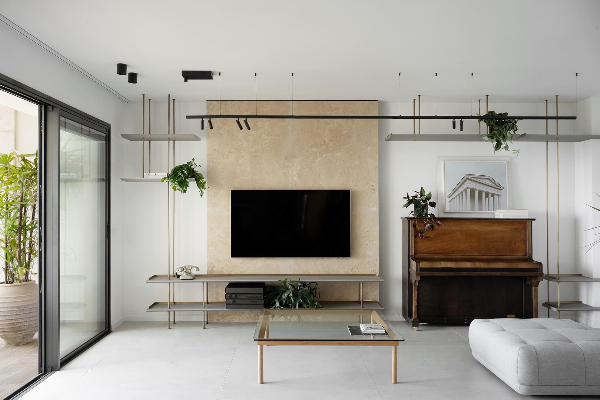 בביקור בבית ממנו עבר הלקוח זיהינו מרחבים מאוד גדולים ופלטת חומרים שממנה לקחנו השראה והיה לנו חשוב לשמר במידה מסוימת פלטה זו גם כי נכונה ללקוח ותעשה את המעבר חלק ונעים יותר, וגם כי סך הכל, פלטת החומרים מאוד קלאסית ונוח לעבוד איתה. את הדירה בעלת 120 המ"ר הפכנו משלושה חדרי שינה וסלון לדירה בעלת אותו החדר הוורסטילי, ויחידת מאסטר ענקית בת 41 מ"ר הכוללת אזור תרגול וספורט, אזור נגינה על סקסופון, מרפסת שמש הפונה לסביבת שוק הפשפשים, חדר ארונות פתוח וכמובן חדר מקלחת מאסטר מאובזר במקלחון ענקי והמון אחסון. את הדירה הנגשנו באופן מלא בכדי לוודא שהדירה תתאים לצרכיו גם בעתיד.